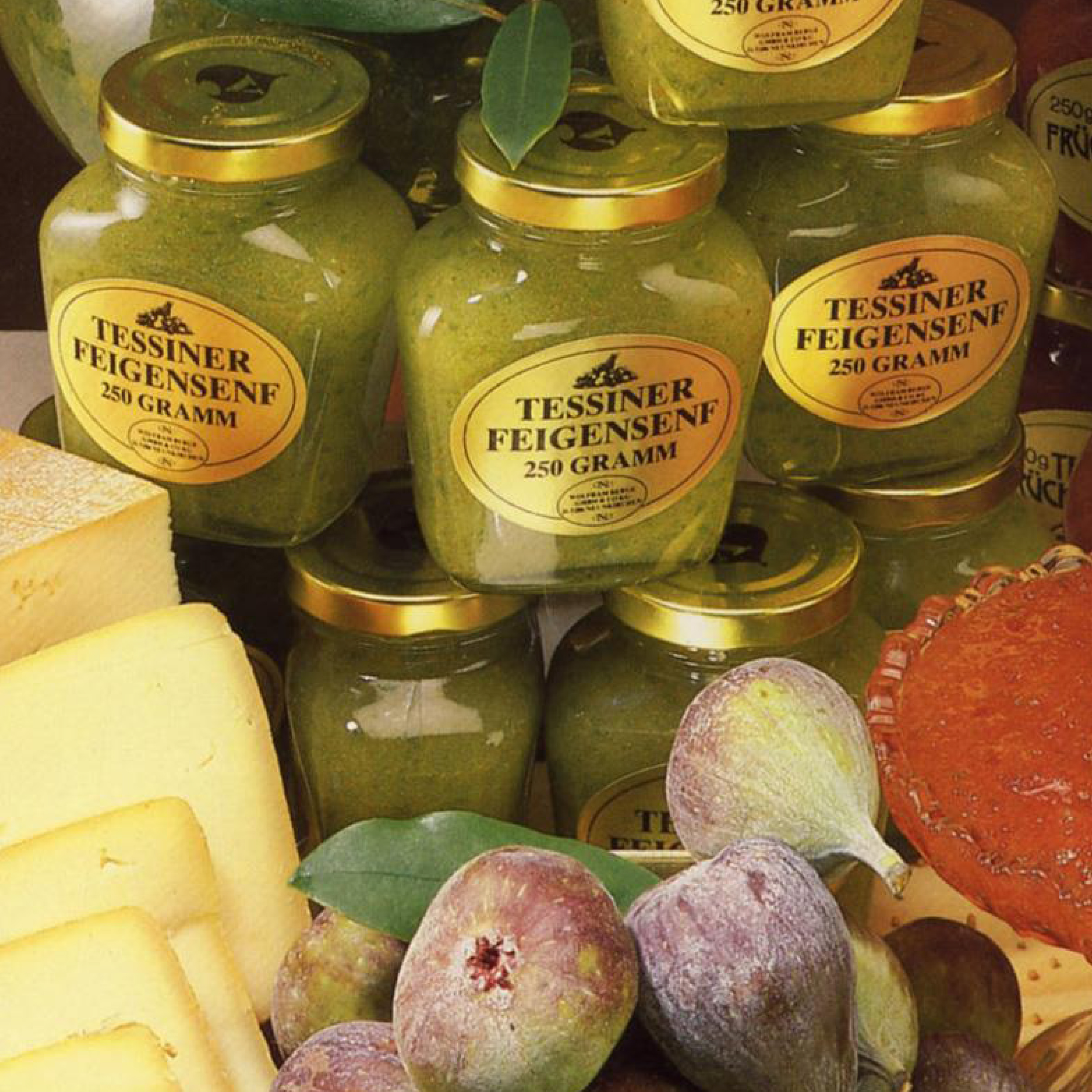 "Auf der Suche nach dem besonderen Genuss, entdeckte ich im Tessin, den besonderen Geschmack von Senffrüchten, die wunderbar zum Rohschinken und zu hartem Käse passten. Und da saßen wir, im Sommer bei einem Tessiner Merlot in einem Grotto mit netten Menschen zusammen – und genau da produzierten wir auf dem Käseteller aus grünen Feigen (die waren in den Senffrüchten), den „Rohling“ unserer heutigen „Original Tessiner Feigensenfsauce“ indem wir Sie mit der Gabel zerdrückten. Das ist jetzt über 50 Jahre her und wir lieben sie, samt ihrer neun Senfsaucen-Geschwister", erzählt Wolfram Berge.
